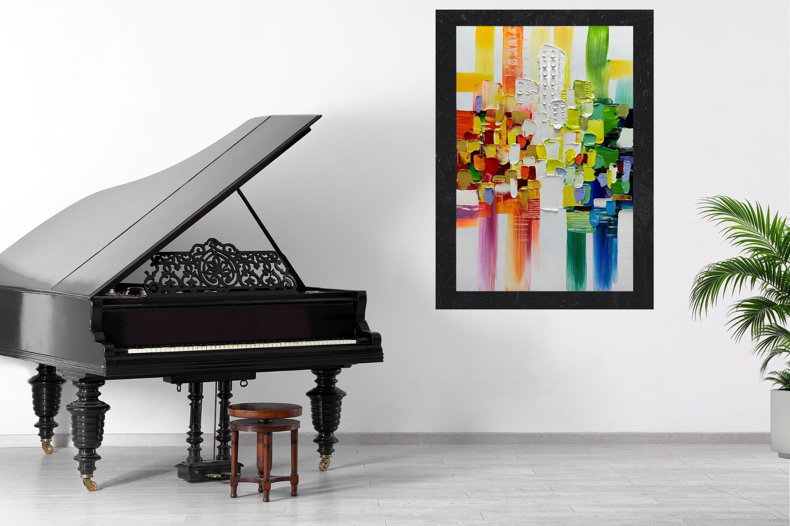 Bring energy, depth, and contemporary flair into your space with this ART8YUQI textured abstract wall art. Inspired by modern cityscapes, this striking artwork features bold, layered palette-knife textures and vibrant blocks of color that create movement and visual intrigue. The combination of rich hues and sculpted paint strokes gives the piece a dynamic, almost architectural feel, making it a perfect statement artwork for modern interiors.