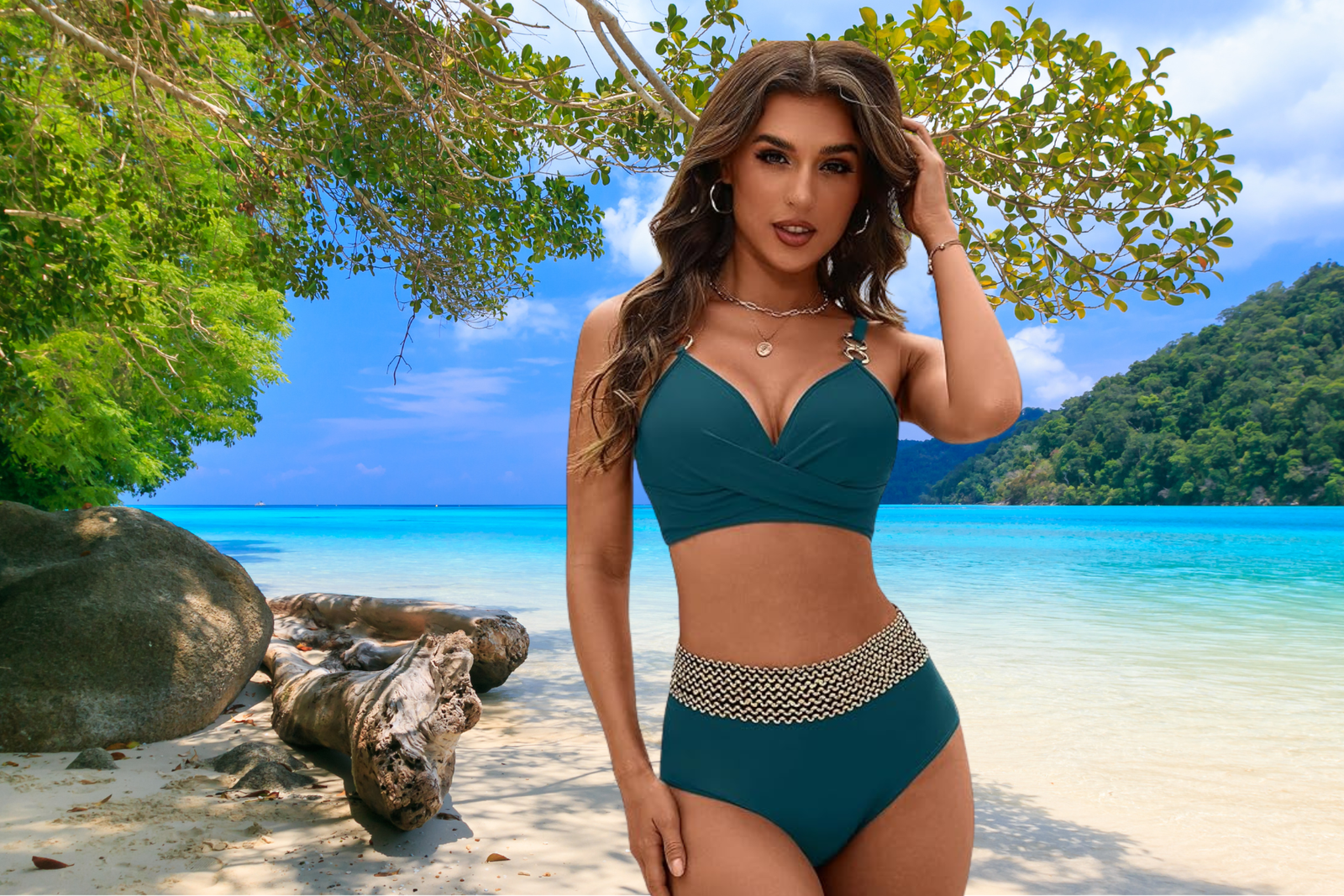 If you love the idea of a two-piece but prefer a little more coverage and support, the BMJL Women’s High Waisted Bikini Set is the sweet spot. It blends a flattering high-rise bottom with a supportive bikini top, plus stylish colorblock and metallic accents that give it an elevated, “resort-ready” look.