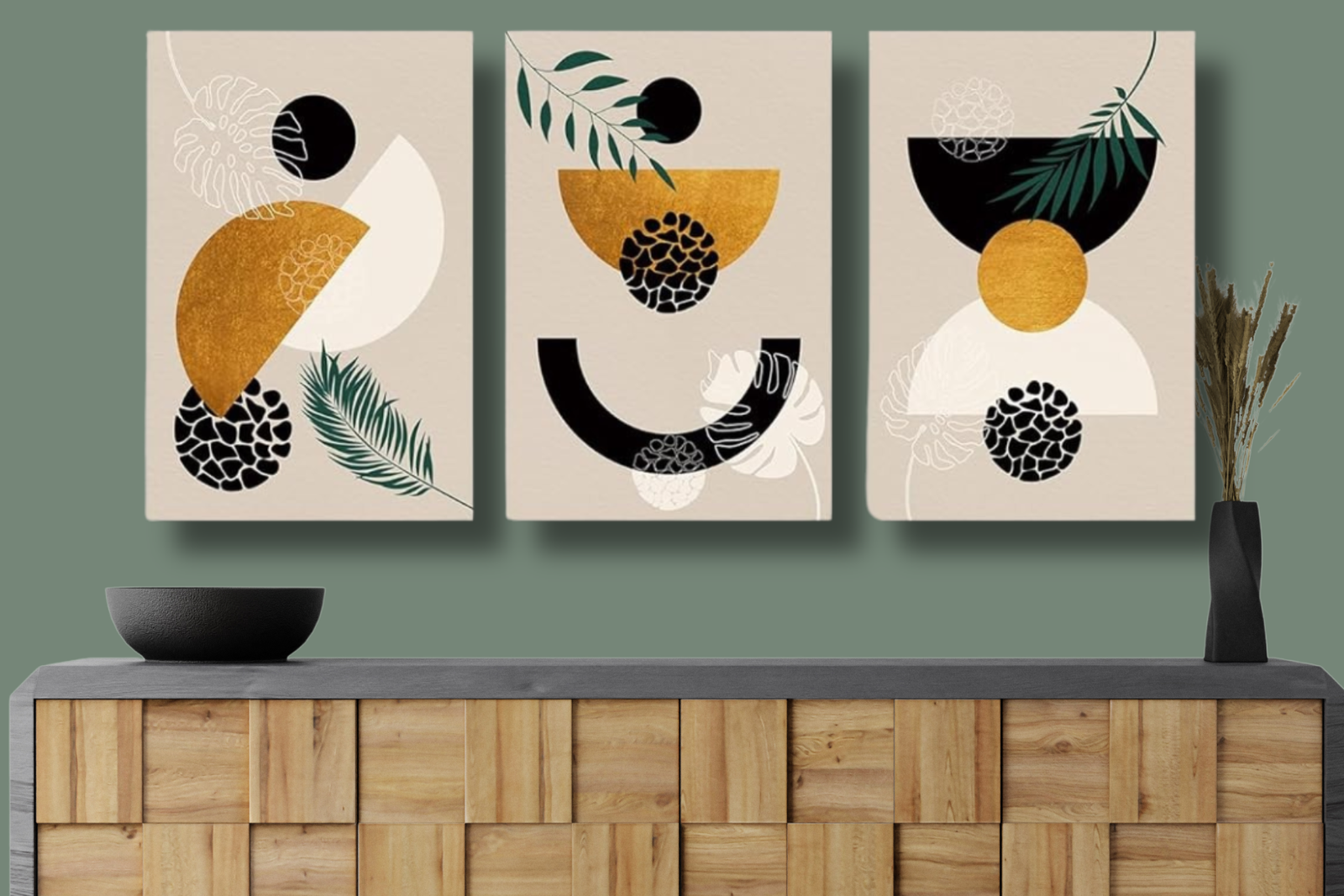 Bring calm, character, and a gallery look to any room. This three-panel boho canvas set blends soft neutrals with earthy terracotta and sage accents, abstract arches, and minimalist geometry. The result is artwork that feels modern yet warm—perfect for apartments where you want instant style without heavy renovation or clutter.