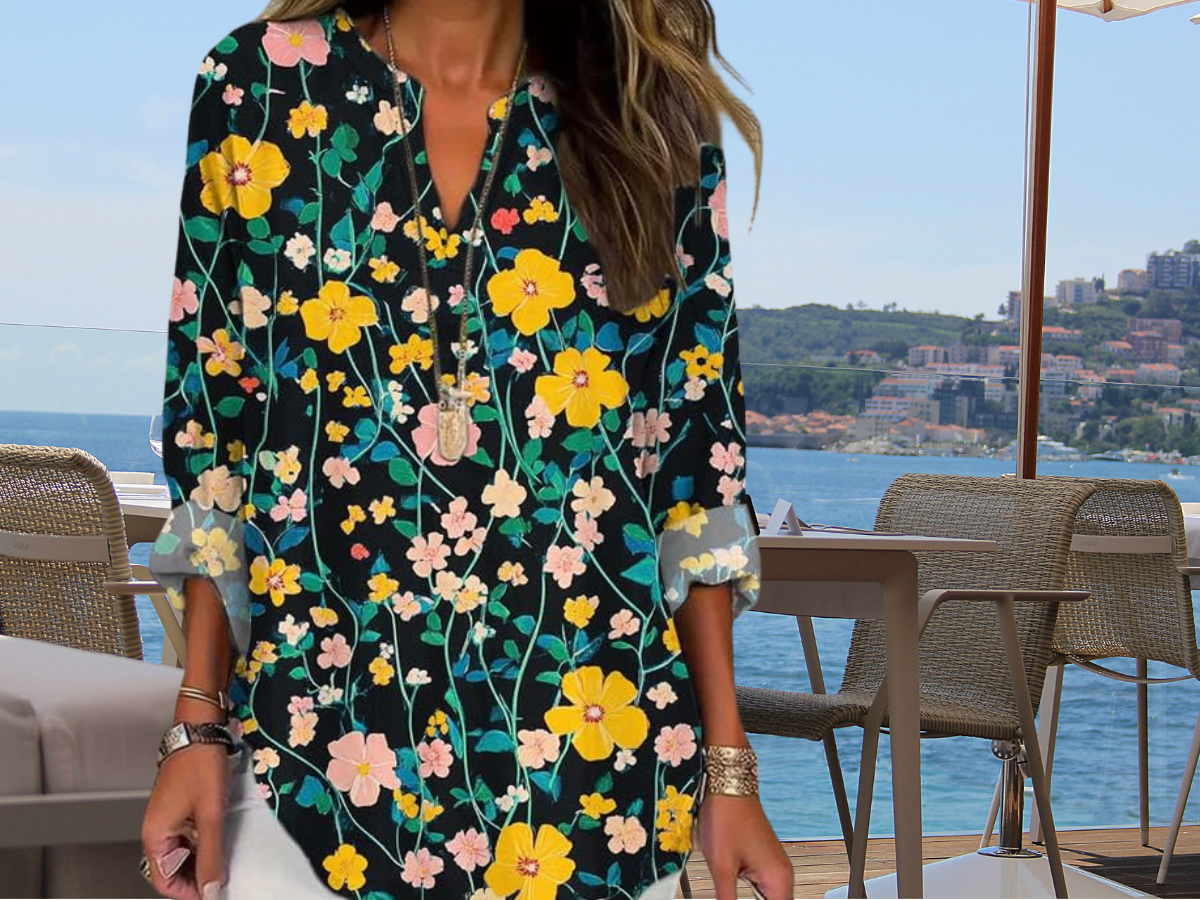 If you enjoy clothing that combines comfort, coverage, and personality, this kind of floral tunic top is a lovely option. It adds color and life to your outfit without demanding complicated styling—just slip it on, pair it with your favorite jeans or shorts, and you’re ready to go.