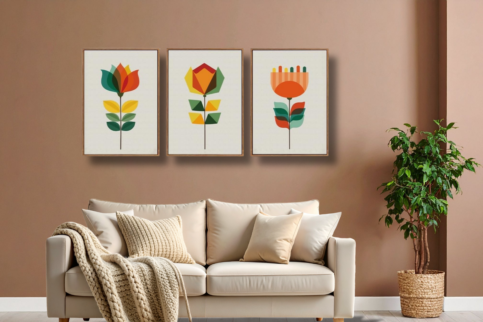 Bring calm, balance, and modern charm into your space with this HDITB Abstract Floral Framed Canvas Wall Art. Featuring three beautifully stylized flowers created with clean geometric shapes and soft neutral tones, this artwork blends contemporary design with a subtle mid-century modern feel.