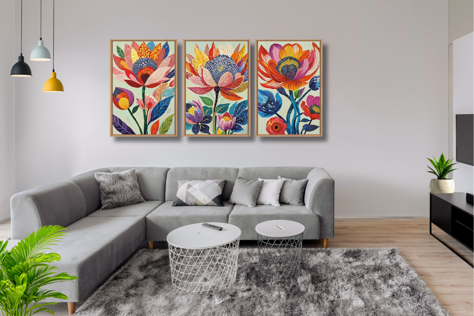 Perfect for those who love colorful statement art, this floral canvas set instantly brightens your home and creates a welcoming, uplifting atmosphere.