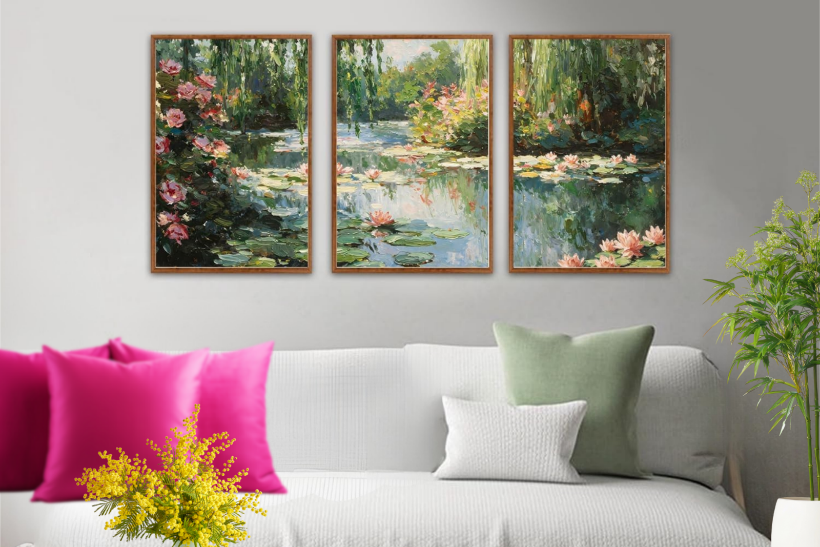 Inspired by the timeless beauty of Monet’s water lily paintings, this elegant framed canvas wall art set brings a sense of tranquility and classic charm into any space. Soft brushstrokes, gentle reflections, and lush botanical tones create a serene impressionist scene that feels both artistic and soothing. The vintage oil-painting style adds depth and movement, making it a perfect focal point for living rooms, bedrooms, dining areas, or offices. Finished with a warm frame, this artwork blends beautifully with neutral, farmhouse, or classic interior décor styles.