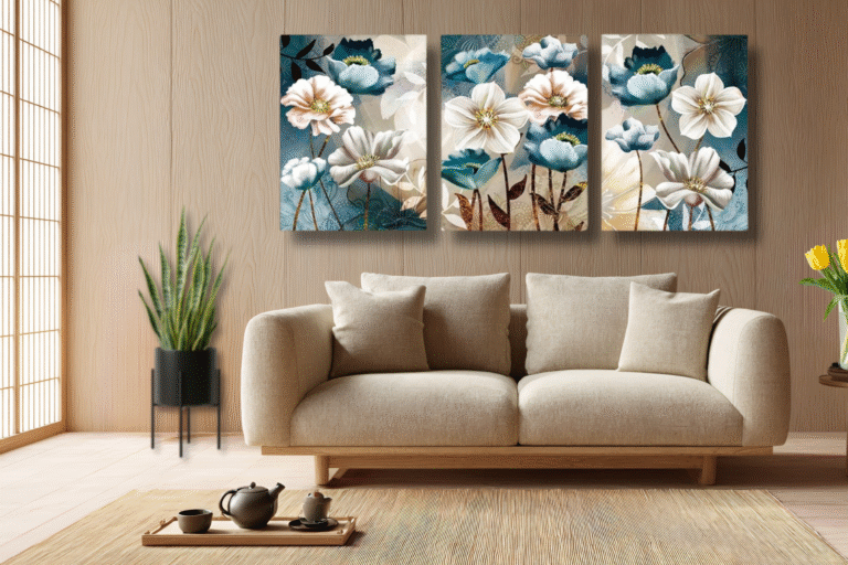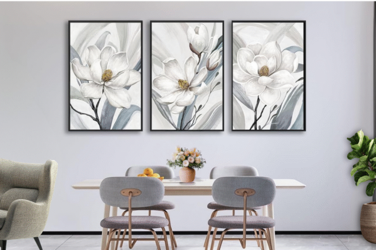 ASDCEUTICALS Framed Canvas Wall Art – Delicate Magnolia Floral Triptych