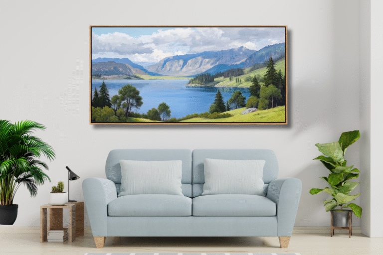 Landscape Wall Art with Mountain & Lake Scenery (29×58 in)